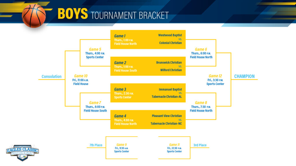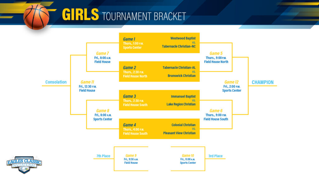 Varsity boys and varsity girls teams participated in 8-team consolation tournaments with a 3-game guarantee. Awards were presented to 1st through 3rd place, 5 All-Tournament athletes, and Tournament MVP of both boys and girls tournaments.